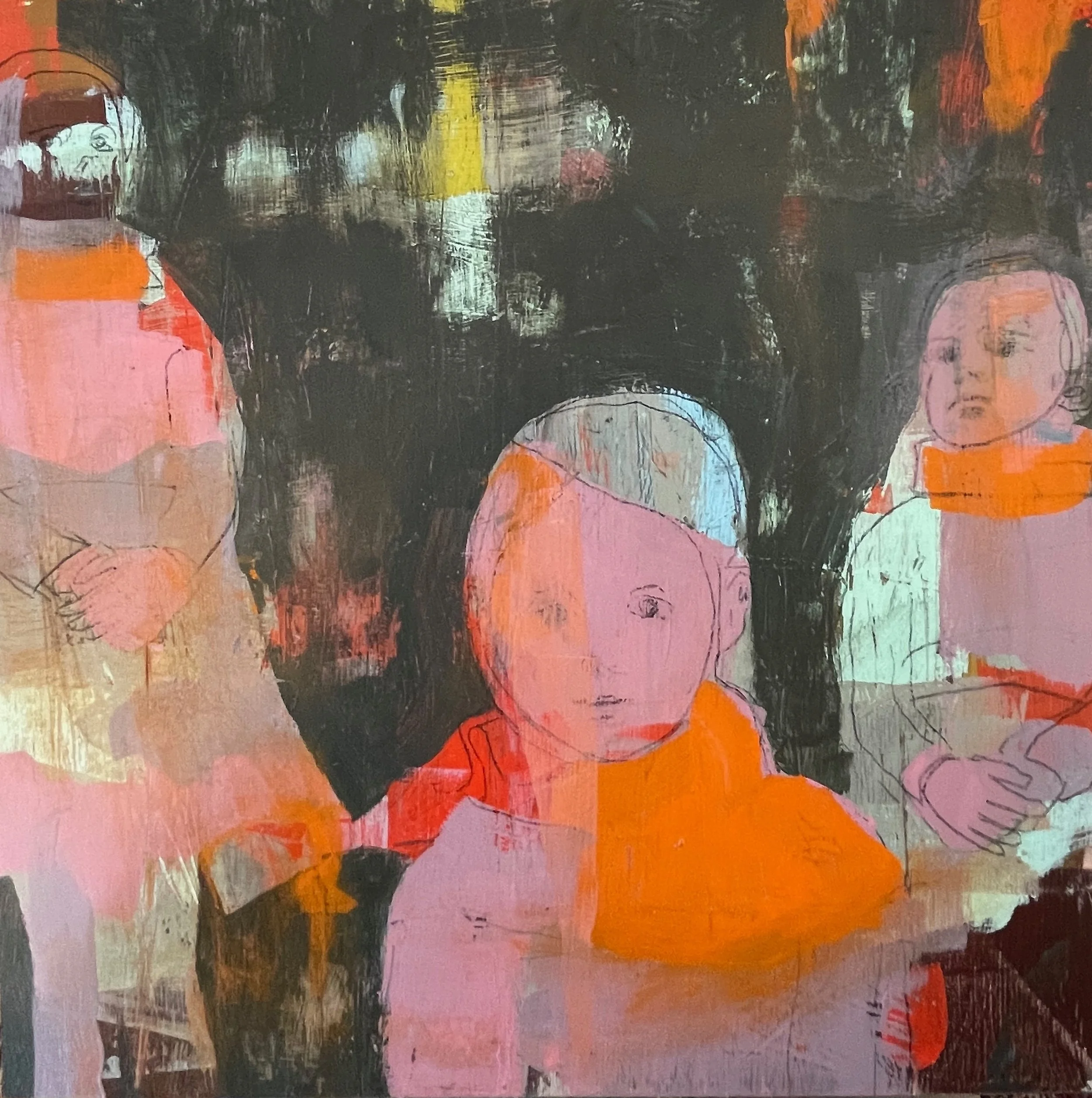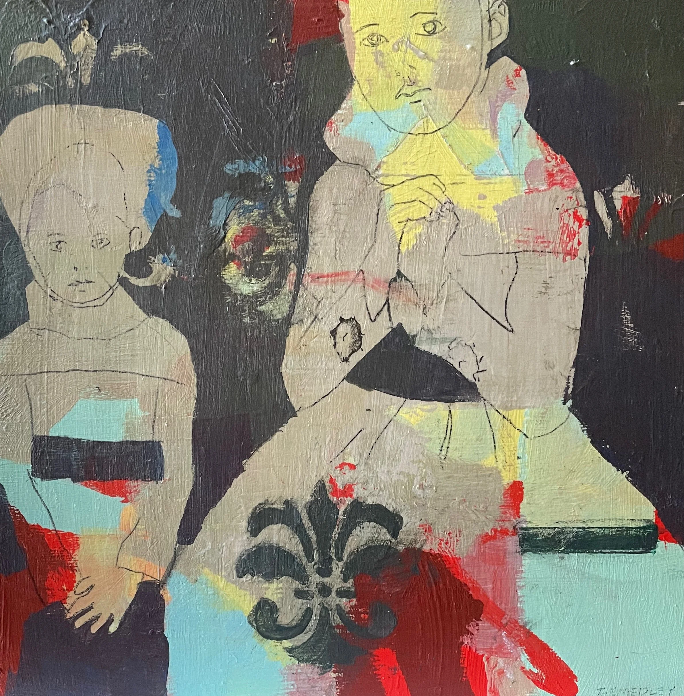 These figures embody the sense that we are never alone: the past surrounds us, holding us, guiding us, and interacting with our lives in subtle ways. Their presence hovers between abstraction and form, a quiet chorus of memory and connection.
