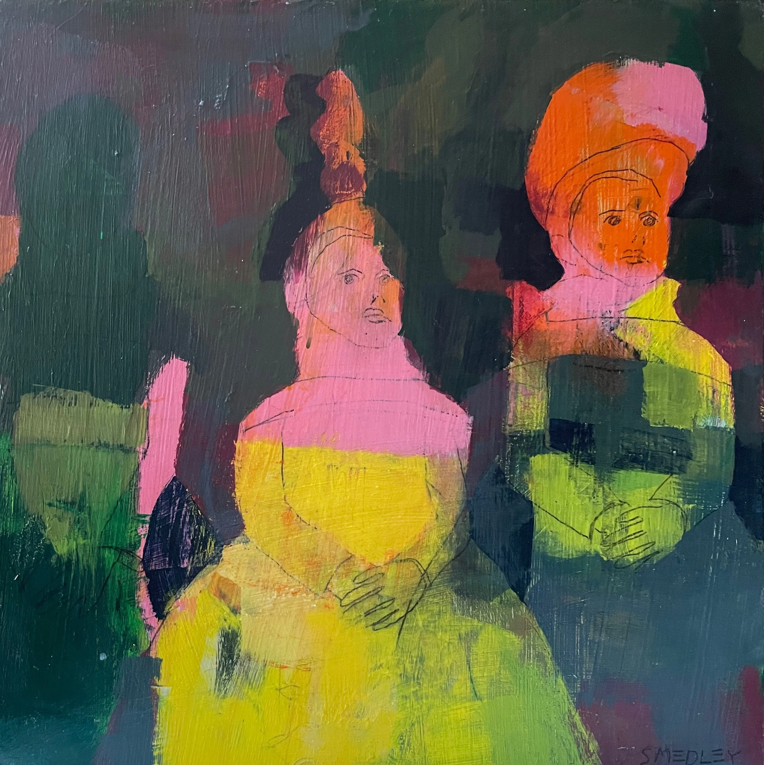 The She series is an exploration of color, intensity, and presence—where vibrant hues and layered contrasts create a world of both immediacy and mystery. Within these fields of color, line drawings of figures emerge and recede, at times hidden, at times fully visible. They inhabit the paintings as ancestral presences, a reminder of the love and strength of thousands who came before us.